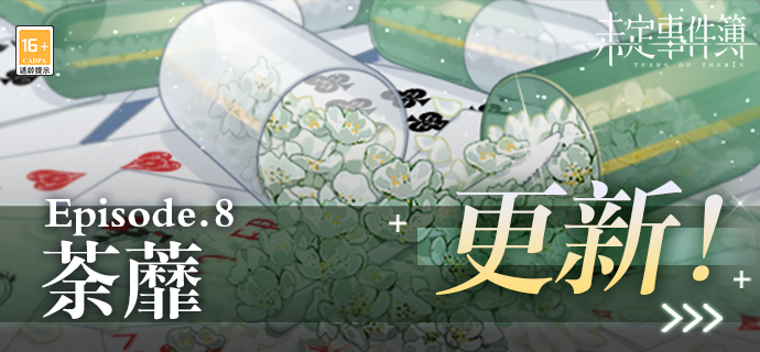《荼蘼》将于3月10日11:00更新,完成主线第八章所有关卡可获得【女神之泪】×1、【未名币】×10000、【法理之谕IV】×10的「主线任务」奖励。同时,主线第八章《荼蘼》异常关卡开放,完成主线第八章异常所有关卡可获得莫弈SR【繁嚣一梦】思绪残影×10、【未名晶片】×100、【未名币】×10000的「主线任务」奖励。