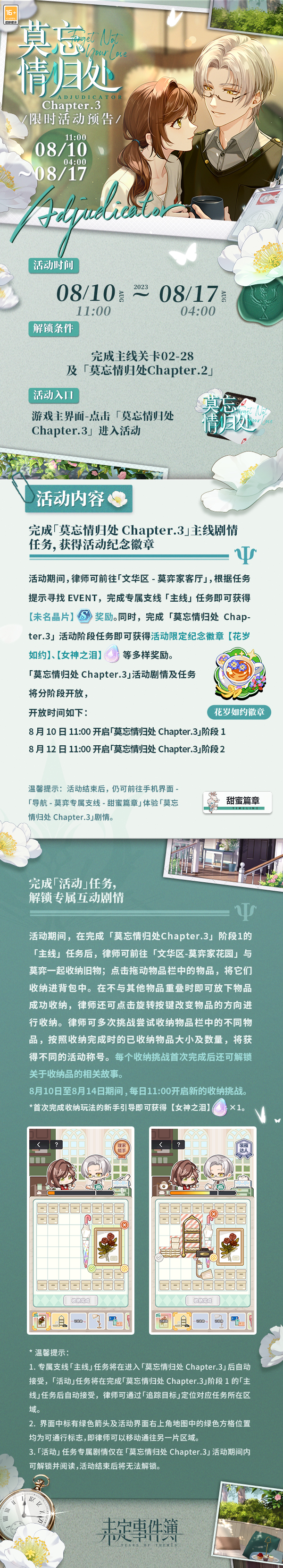 8月10日11:00,「莫忘情归处Chapter.3」限时活动即将开启!